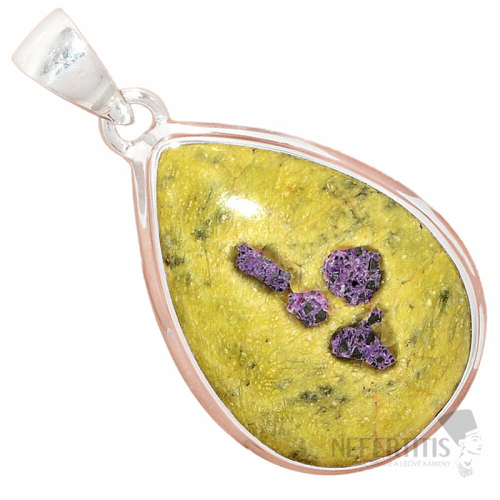 Strieborný prívesok so vzácnym Atlantisitom. Atlantisit, zvaný tiež stichtit, je vzácny kameň, ktorý sa ťaží v jedinej bani na svete. Ponuka tohto kameňa na trhu je značne obmedzená. Pôvab a krása jeho sýto fialovej farby v zelenom kameni vás očarí na prvý pohľad. Ag 925. Veľkosť kameňa spoločne s nevšednou a výraznou farebnou kombináciou farieb robí šperk výnimočným a neprehliadnuteľným. Kupujete priamo vyobrazený šperk.