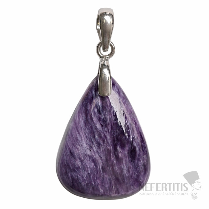 Strieborný prívesok s čaroitom je výrazný šperk z minerálu, ktorý zaujme svojou jedinečnou fialovou farbou a charakteristickou vláknitou kresbou. Čaroit je vzácny minerál známy svojimi odtieňmi fialovej, levanduľovej a purpurovej farby, ktoré sa často prelínajú v zaujímavých prírodných vzoroch. Každý kameň je originálny a vytvára neopakovateľný vzhľad.