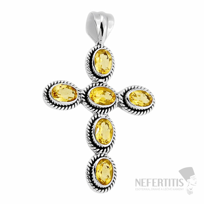Uchvacujúca a výnimočný strieborný prívesok v tvare kríža s brúsenými citríny. Vďaka plôškam výbrusov sa šperk krásne trblieta, najmä pri dopade svetla. Ag 925. Kupujete priamo vyobrazený šperk.