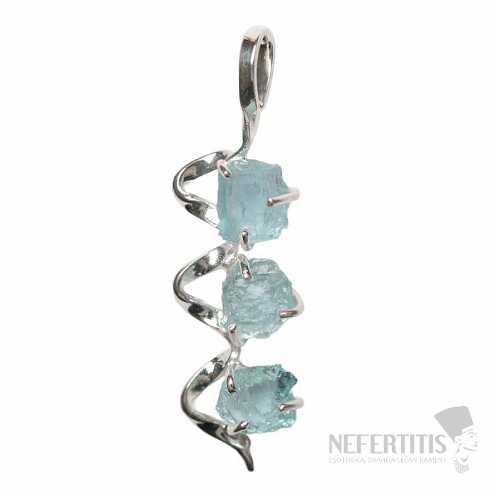Krásny dizajnový strieborný prívesok so surovými akvamarínmi. Ag 925. Kupujete priamo vyobrazený šperk.