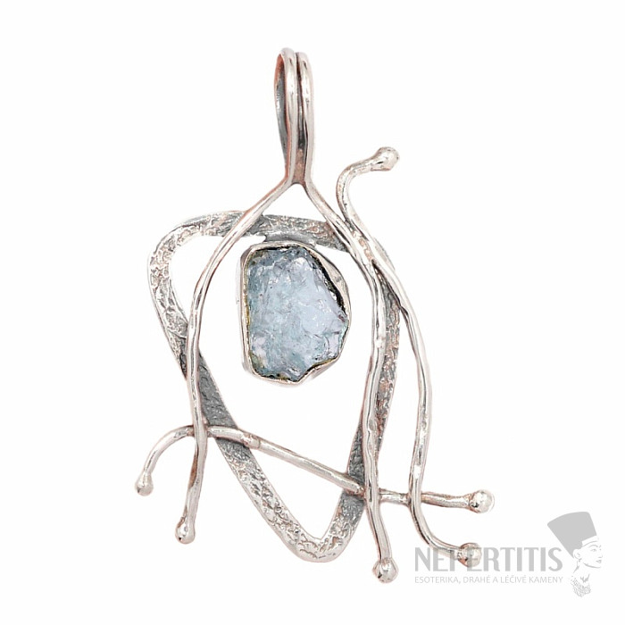 Dizajnový prívesok akvamarín surový striebro Ag 925 P2419