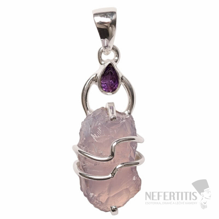 Krásny dizajnový strieborný prívesok zo surového levanduľového ametystu a brúseného fialového ametystu. Ag 925. Kupujete priamo vyobrazený šperk.
