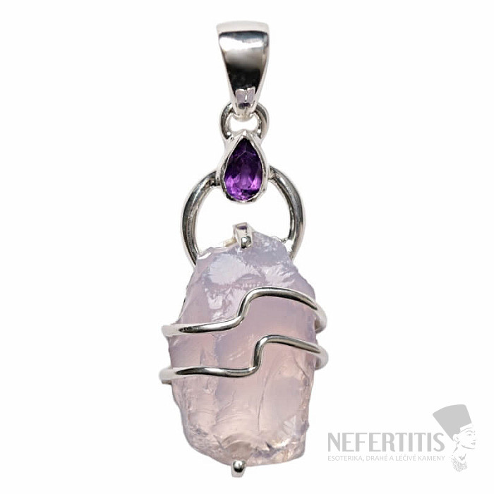 Krásny dizajnový strieborný prívesok zo surového levanduľového ametystu a brúseného fialového ametystu. Ag 925. Kupujete priamo vyobrazený šperk.