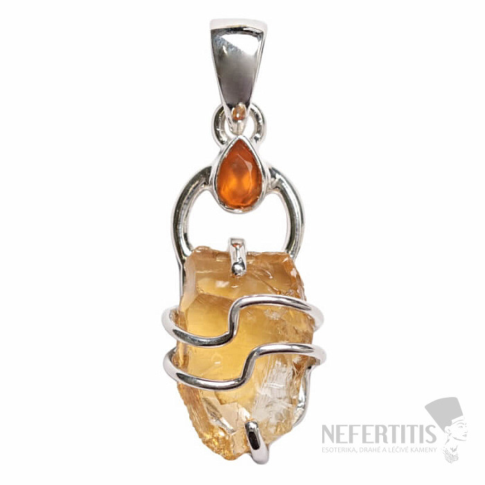 Krásny dizajnový strieborný prívesok s surovým citrínom a brúseným karneolom . Ag 925. Kupujete priamo vyobrazený šperk.