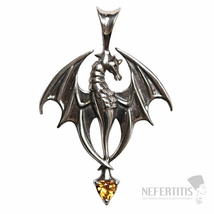 Krásny dizajnový strieborný prívesok v tvare draka s brúseným citrínom . Ag 925. Kupujete priamo vyobrazený šperk.