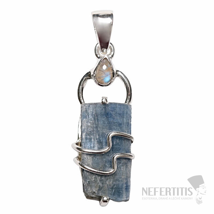 Krásny dizajnový strieborný prívesok s modrým kyanitom a mesačným kameňom . Ag 925. Kupujete priamo vyobrazený šperk.