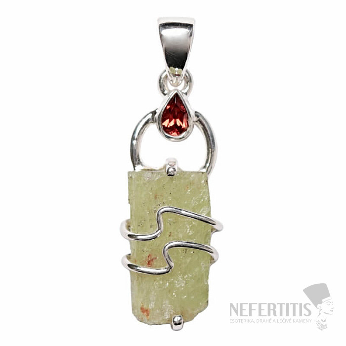 Krásny dizajnový strieborný prívesok so vzácnym zeleným kyanitom a brúseným granátom . Ag 925. Kupujete priamo vyobrazený šperk.