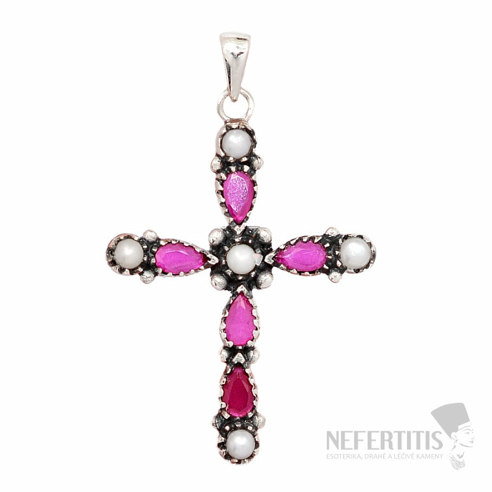 Krásny dizajnový strieborný prívesok osadený rubíny a perlami . Ag 925. Kupujete priamo vyobrazený šperk.