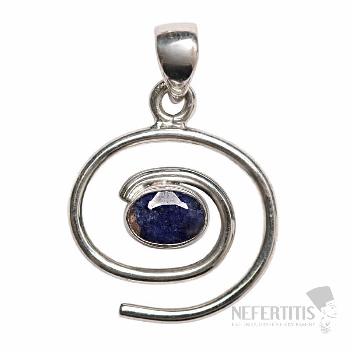 Krásny dizajnový strieborný prívesok s modrým brúseným zafírom indickým. Ag 925. Zafír indický je obchodné označenie prírodného kameňa, najčastejšie sillimanitu či korundu, umelo dofarbovaného do farby zafíru. Nejde teda o prírodný zafír. Kupujete priamo vyobrazený šperk.