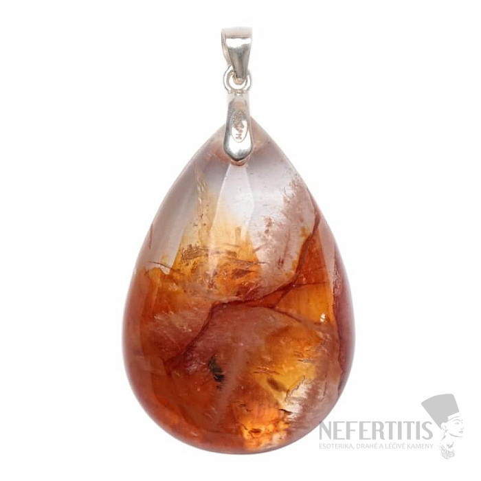 Strieborný prívesok s hematoidom - krištáľom , ktorý má v sebe inklúzie hematitu , ktoré v krištáli vytvárajú krásne vzory oranžovej až krvavo červenej farby. Ag 925. Kupujete priamo vyobrazený šperk.