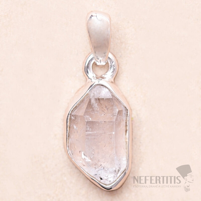 Atraktívny strieborný prívesok s výnimočne krásnym HERKIMER diamantom - vzácnym druhom krištáľu. Nechajte sa očariť krásou tohto unikátneho krištáľu a leskom svetla na plôškach jeho kryštálu. Herkimer diamant je unikátny v tom, že na rozdiel od ostatných krišťáľu jeho kryštál tvoria "špici" na oboch koncoch kryštálu. Vďaka tomu je najlepším krištáľom pre výrobu šperkov, navyše na trhu pomerne vzácny. Prívesok je osadený krásne tvarovaným kryštálom s vysokou čistotou krištáľu - kameň unikátny kvality! Prívesok pôsobí veľmi nežným a pritom elegantným dojmom. Ag 925. Kupujete priamo vyobrazený šperk.