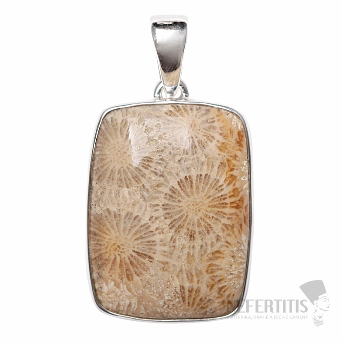 Koral fosílne indonézsky prívesok striebro Ag 925 P456