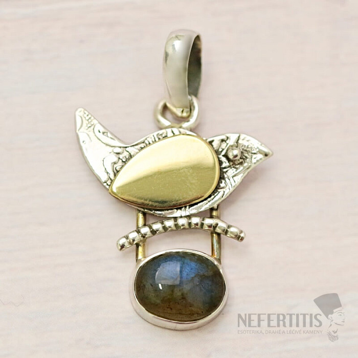 Uchvacujúci a výnimočný strieborný, čiastočne pozlátený, prívesok s prvotriednym prírodným labradoritom, s výraznou dúhovou hrou farieb, v ktorom sa pri dopade svetla kúzelne rozžiari jasná modro zlatá farba. Ag 925. Nechajte sa očariť krásou a hrou jeho žiarivo modrej farby. Vďaka hre farieb ide o atraktívny a neprehliadnuteľný šperk. Kupujete priamo vyobrazený šperk.