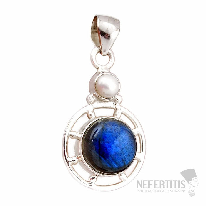Uchvacujúci a výnimočný strieborný prívesok s prvotriednym prírodným labradoritom s výraznou dúhovou hrou farieb, v ktorom sa pri dopade svetla kúzelne rozžiari jasná modro zlatá farba a bielou perlou. Ag 925. Nechajte sa očariť krásou a hrou žiarivo modrej farby labradoritu. Vďaka hre farieb ide o atraktívny a neprehliadnuteľný šperk. Kupujete priamo vyobrazený šperk.