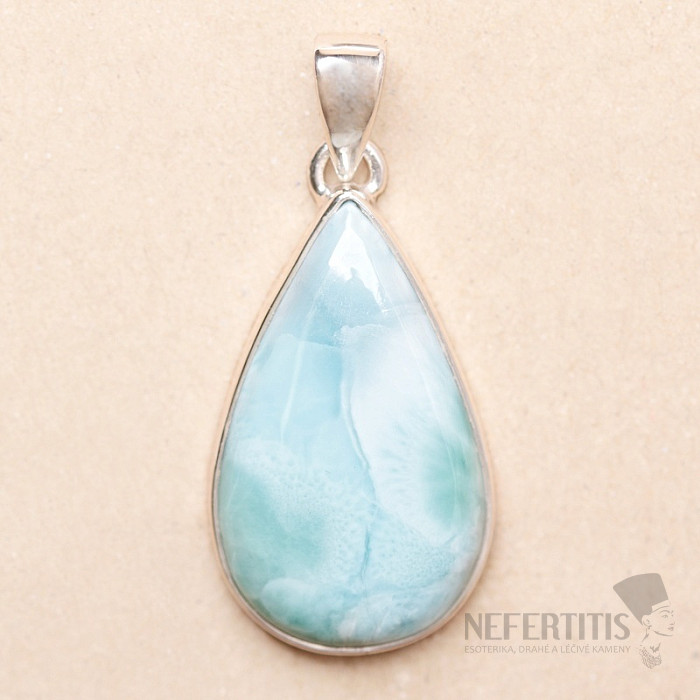Pôvabný prívesok zo striebra s krásnym a kvalitným kabošonom vzácneho larimaru , ktorý pripomína hru slnečných lúčov na hladine mora. Šperk je ručne vyrobený, kameň larimaru je starostlivo vybraný so zreteľne modrým vyfarbením. Ag 925. Kupujete priamo vyobrazený šperk.