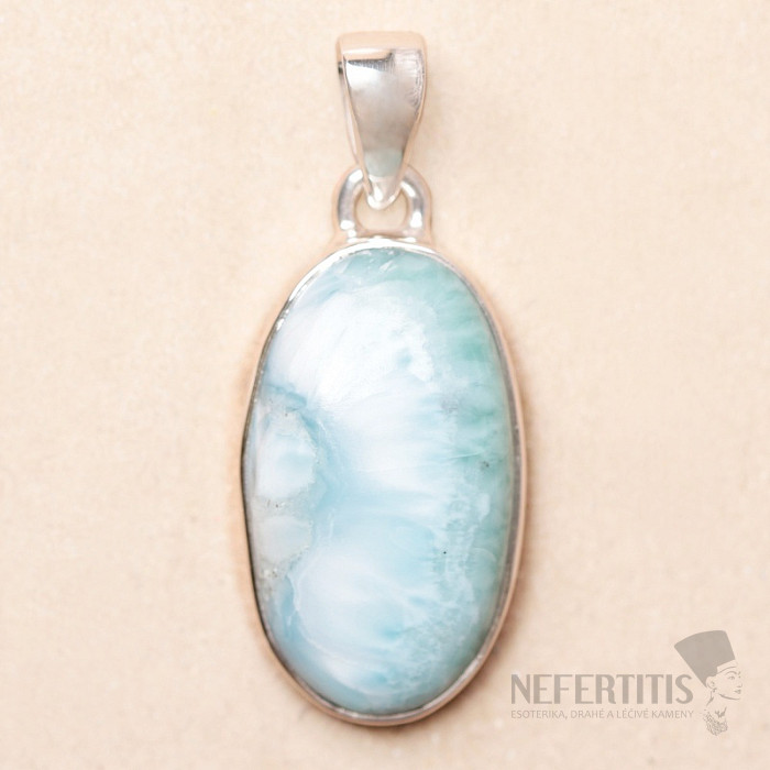 Pôvabný prívesok zo striebra s krásnym a kvalitným kabošonom vzácneho larimaru , ktorý pripomína hru slnečných lúčov na hladine mora. Šperk je ručne vyrobený, kameň larimaru je starostlivo vybraný so zreteľne modrým vyfarbením. Ag 925. Kupujete priamo vyobrazený šperk.