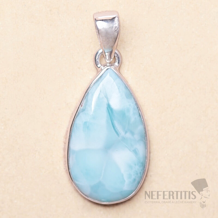 Pôvabný prívesok zo striebra s krásnym a kvalitným kabošonom vzácneho larimaru , ktorý pripomína hru slnečných lúčov na hladine mora. Šperk je ručne vyrobený, kameň larimaru je starostlivo vybraný so zreteľne modrým vyfarbením. Ag 925. Kupujete priamo vyobrazený šperk.