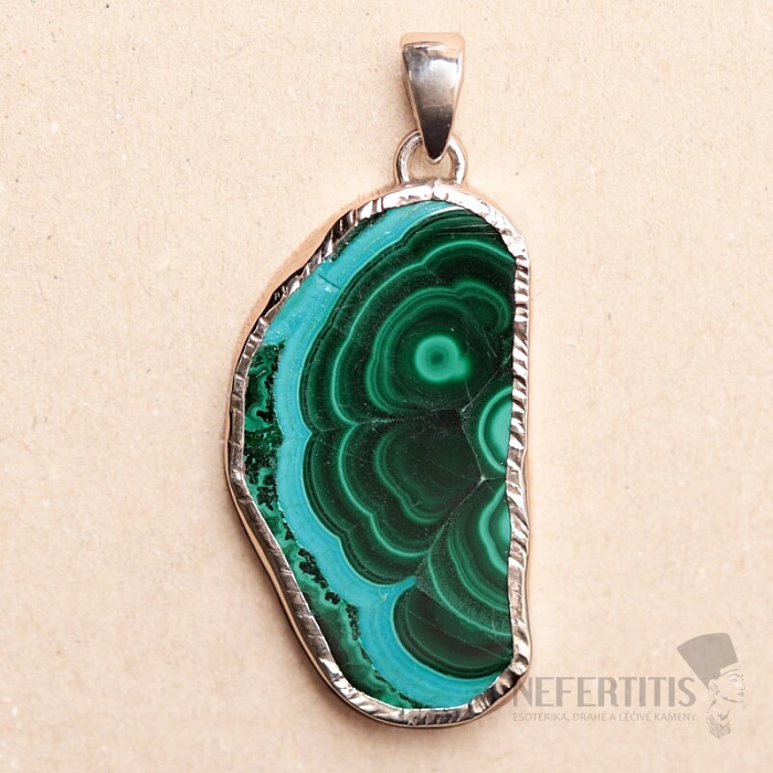 Malachit v chryzokole plátok prívesok striebro Ag 925 P12