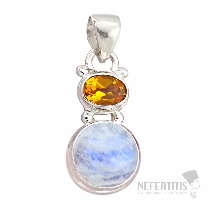Výnimočne krásny, strieborný prívesok s brúseným dúhovým mesačným kameňom a brúseným citrínom vám vnesie do života nielen kúzlo svojich farieb, ale predovšetkým lásku, vášeň, túžbu, ochranu, múdrosť, a zároveň aj zmierenie a pokoj. Ag 925. Kupujete priamo vyobrazený šperk.