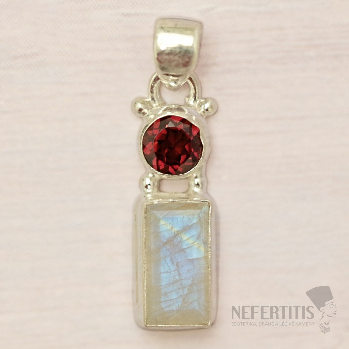 Výnimočne krásny, strieborný prívesok s brúseným dúhovým mesačným kameňom a brúseným granátom vám vnesie do života nielen kúzlo svojich farieb, ale predovšetkým lásku, vášeň, túžbu, ochranu, múdrosť, a zároveň aj zmierenie a pokoj. Ag 925. Kupujete priamo vyobrazený šperk.