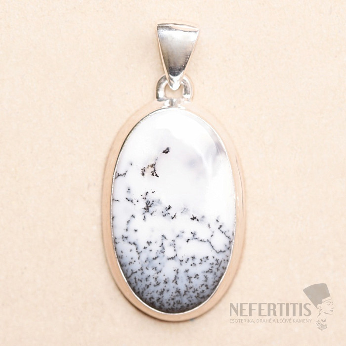 Pôvabný strieborný prívesok s dentritickým opálom , ktorý svojou bielou a šedou farbou a krásnou kresbou inklúzií navodzuje predstavu zasneženej krajiny ako z pera dávnych čínskych kreslírov krajin. 925. Kupujete priamo vyobrazený šperk.