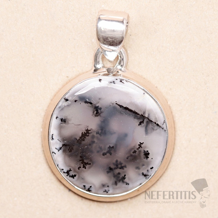 Pôvabný strieborný prívesok s dentritickým opálom , ktorý svojou bielou a šedou farbou a krásnou kresbou inklúzií navodzuje predstavu zasneženej krajiny ako z pera dávnych čínskych kreslírov krajin. 925. Kupujete priamo vyobrazený šperk.