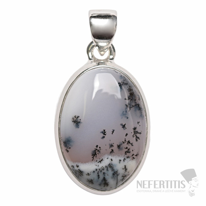 Pôvabný strieborný prívesok s dentritickým opálom , ktorý svojou bielou a šedou farbou a krásnou kresbou inklúzií navodzuje predstavu zasneženej krajiny ako z pera dávnych čínskych kreslírov krajin. 925. Kupujete priamo vyobrazený šperk.
