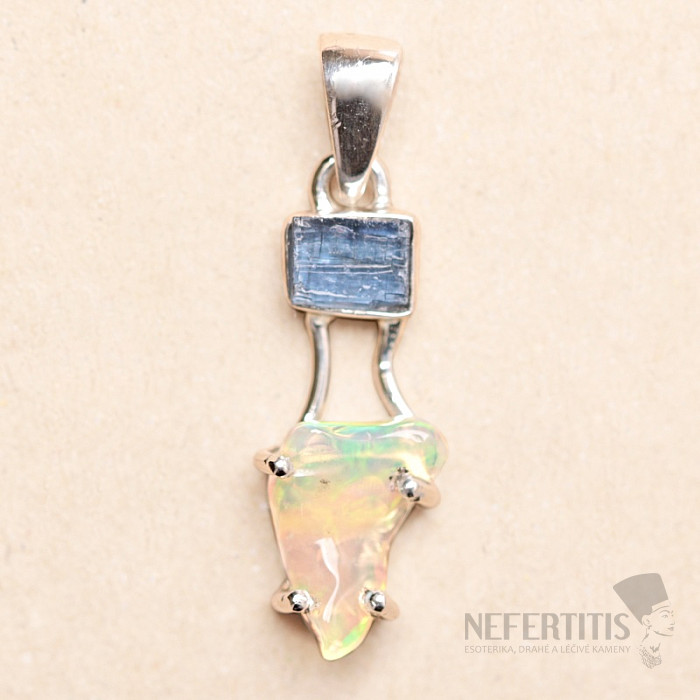 Opál etiópsky a modrý kyanit prívesok striebro Ag 925 LOT2