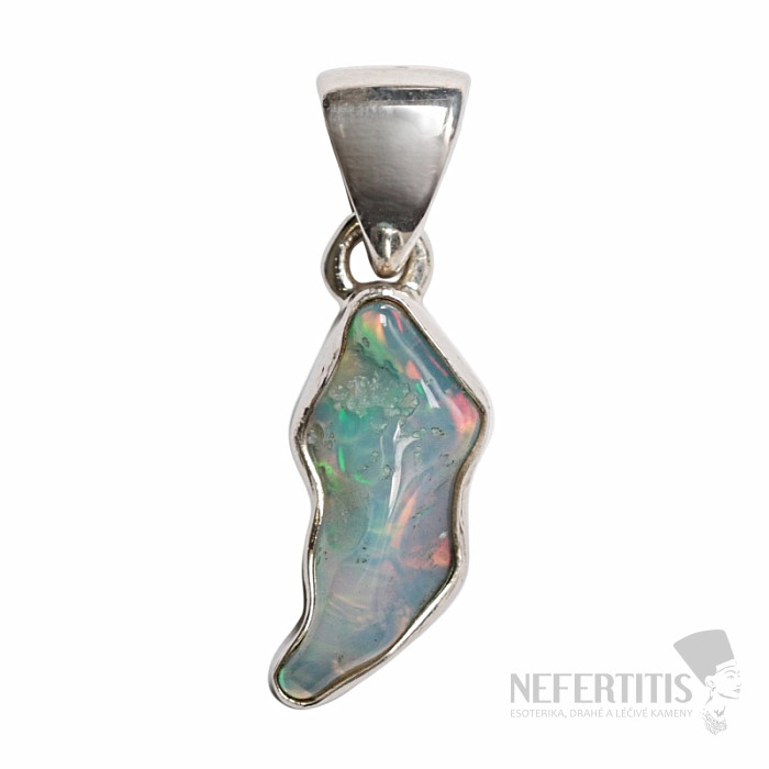 Moderný a elegantný strieborný prívesok so surovým zalešteným opálom, s krásnou hrou farieb. Ag 925. Pôsobivý a elegantný šperk, od pohľadu navodzujúci radosť a pocity harmónie. Etiópske opály oproti austrálskym opálom doslova hýria až neónovo žiarivými odleskami farieb. Hoci na prvý pohľad na to nevyzerajú, ohňostroj farieb, ktorý z opálu v tomto prívesku vytryskne pri každom dopade svetla, očarí nielen vás, ale celé vaše okolie. Kupujete priamo vyobrazený šperk.