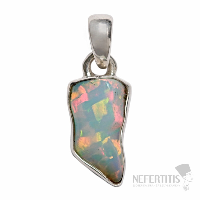 Moderný a elegantný strieborný prívesok so surovým zalešteným opálom, s krásnou hrou farieb. Ag 925. Pôsobivý a elegantný šperk, od pohľadu navodzujúci radosť a pocity harmónie. Etiópske opály oproti austrálskym opálom doslova hýria až neónovo žiarivými odleskami farieb. Hoci na prvý pohľad na to nevyzerajú, ohňostroj farieb, ktorý z opálu v tomto prívesku vytryskne pri každom dopade svetla, očarí nielen vás, ale celé vaše okolie. Kupujete priamo vyobrazený šperk.