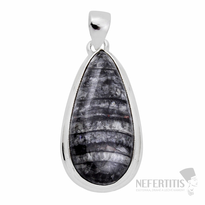 Krásny a výrazný strieborný prívesok s orthocerasom. Ag 925. Kupujete priamo vyobrazený šperk. Orthoceras je druh vyhynutého hlavonožca, ktorý žil pred 350-400 miliónmi rokov v plytkých moriach na území dnešného Maroka… viac »