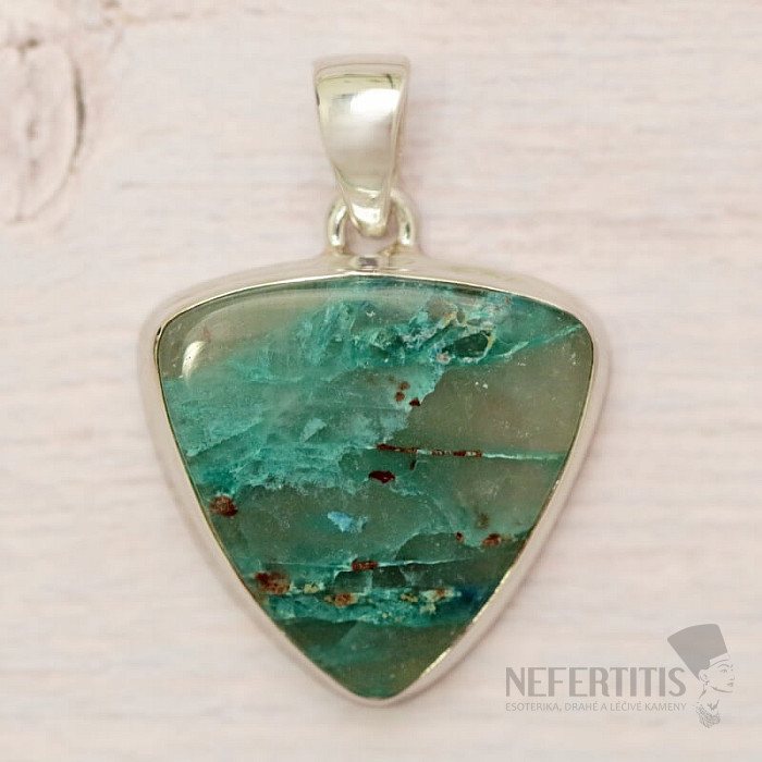 Pôvabný strieborný prívesok so vzácnym a zberateľsky ceneným prírodným Quantum quattro. Ag 925. Quantum quattro je kombináciou štyroch minerálov - shattuckitu, dioptasu, malachitu a chryzokolu. Každý šperk je originálny, neopakovateľný a vďaka farebnej kombinácii a usporiadaniu minerálov podnecuje fantáziu, pripomína pohľad na Zem z vtáčej perspektívy. Budete mať krásny šperk, ktorý nikto neprehliadne, vhodný na rôzne príležitosti. Kupujete priamo vyobrazený šperk.