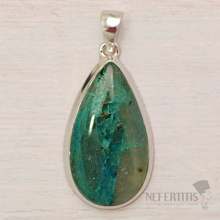 Pôvabný strieborný prívesok so vzácnym a zberateľsky ceneným prírodným Quantum quattro. Ag 925. Quantum quattro je kombináciou štyroch minerálov - shattuckitu, dioptasu, malachitu a chryzokolu. Každý šperk je originálny, neopakovateľný a vďaka farebnej kombinácii a usporiadaniu minerálov podnecuje fantáziu, pripomína pohľad na Zem z vtáčej perspektívy. Budete mať krásny šperk, ktorý nikto neprehliadne, vhodný na rôzne príležitosti. Kupujete priamo vyobrazený šperk.