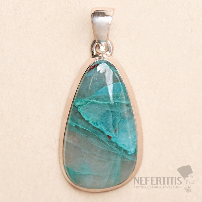 Pôvabný strieborný prívesok so vzácnym a zberateľsky ceneným prírodným Quantum quattro. Ag 925. Quantum quattro je kombináciou štyroch minerálov - shattuckitu, dioptasu, malachitu a chryzokolu. Každý šperk je originálny, neopakovateľný a vďaka farebnej kombinácii a usporiadaniu minerálov podnecuje fantáziu, pripomína pohľad na Zem z vtáčej perspektívy. Budete mať krásny šperk, ktorý nikto neprehliadne, vhodný na rôzne príležitosti. Kupujete priamo vyobrazený šperk.