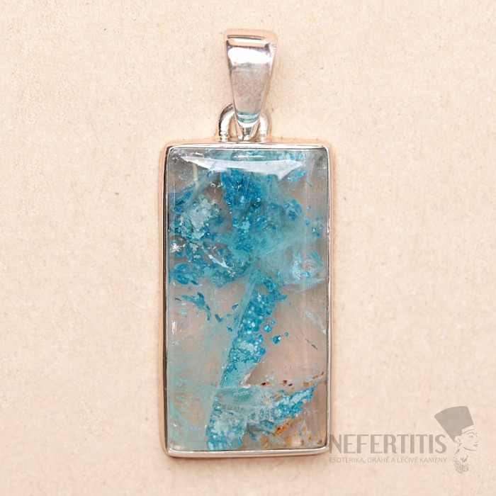Pôvabný strieborný prívesok so vzácnym a zberateľsky ceneným prírodným Quantum quattro. Ag 925. Quantum quattro je kombináciou štyroch minerálov - shattuckitu, dioptasu, malachitu a chryzokolu. Každý šperk je originálny, neopakovateľný a vďaka farebnej kombinácii a usporiadaniu minerálov podnecuje fantáziu, pripomína pohľad na Zem z vtáčej perspektívy. Budete mať krásny šperk, ktorý nikto neprehliadne, vhodný na rôzne príležitosti. Kupujete priamo vyobrazený šperk.