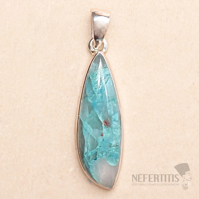 Pôvabný strieborný prívesok so vzácnym a zberateľsky ceneným prírodným Quantum quattro. Ag 925. Quantum quattro je kombináciou štyroch minerálov - shattuckitu, dioptasu, malachitu a chryzokolu. Každý šperk je originálny, neopakovateľný a vďaka farebnej kombinácii a usporiadaniu minerálov podnecuje fantáziu, pripomína pohľad na Zem z vtáčej perspektívy. Budete mať krásny šperk, ktorý nikto neprehliadne, vhodný na rôzne príležitosti. Kupujete priamo vyobrazený šperk.