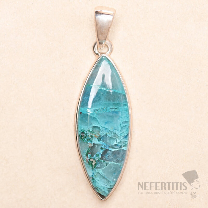 Pôvabný strieborný prívesok so vzácnym a zberateľsky ceneným prírodným Quantum quattro. Ag 925. Quantum quattro je kombináciou štyroch minerálov - shattuckitu, dioptasu, malachitu a chryzokolu. Každý šperk je originálny, neopakovateľný a vďaka farebnej kombinácii a usporiadaniu minerálov podnecuje fantáziu, pripomína pohľad na Zem z vtáčej perspektívy. Budete mať krásny šperk, ktorý nikto neprehliadne, vhodný na rôzne príležitosti. Kupujete priamo vyobrazený šperk.