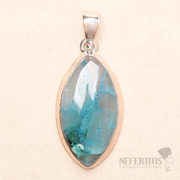 Pôvabný strieborný prívesok so vzácnym a zberateľsky ceneným prírodným Quantum quattro. Ag 925. Quantum quattro je kombináciou štyroch minerálov - shattuckitu, dioptasu, malachitu a chryzokolu. Každý šperk je originálny, neopakovateľný a vďaka farebnej kombinácii a usporiadaniu minerálov podnecuje fantáziu, pripomína pohľad na Zem z vtáčej perspektívy. Budete mať krásny šperk, ktorý nikto neprehliadne, vhodný na rôzne príležitosti. Kupujete priamo vyobrazený šperk.