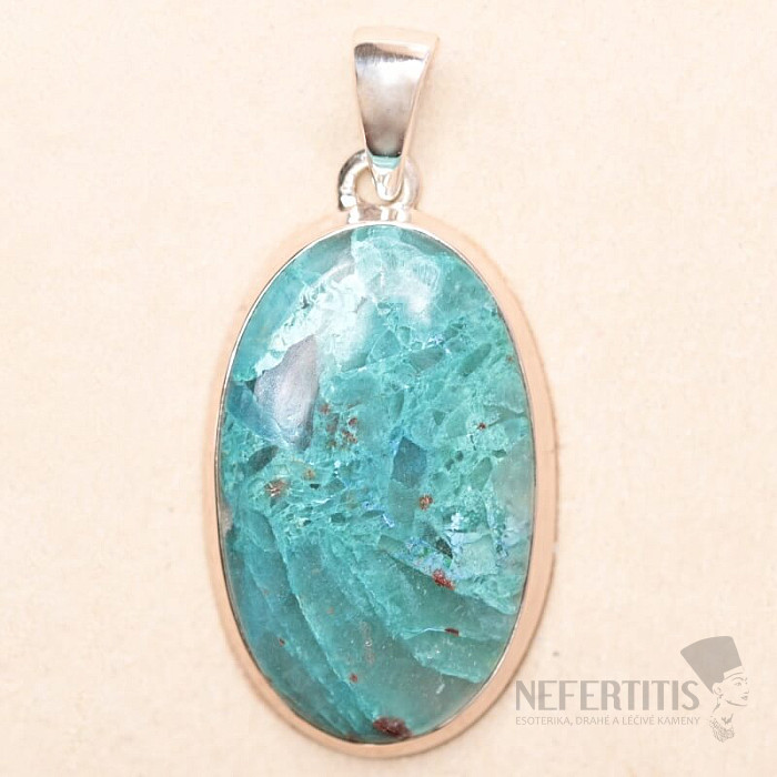 Pôvabný strieborný prívesok so vzácnym a zberateľsky ceneným prírodným Quantum quattro. Ag 925. Quantum quattro je kombináciou štyroch minerálov - shattuckitu, dioptasu, malachitu a chryzokolu. Každý šperk je originálny, neopakovateľný a vďaka farebnej kombinácii a usporiadaniu minerálov podnecuje fantáziu, pripomína pohľad na Zem z vtáčej perspektívy. Budete mať krásny šperk, ktorý nikto neprehliadne, vhodný na rôzne príležitosti. Kupujete priamo vyobrazený šperk.