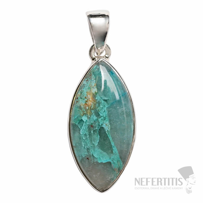 Pôvabný strieborný prívesok so vzácnym a zberateľsky ceneným prírodným Quantum quattro. Ag 925. Quantum quattro je kombináciou štyroch minerálov - shattuckitu, dioptasu, malachitu a chryzokolu. Každý šperk je originálny, neopakovateľný a vďaka farebnej kombinácii a usporiadaniu minerálov podnecuje fantáziu, pripomína pohľad na Zem z vtáčej perspektívy. Budete mať krásny šperk, ktorý nikto neprehliadne, vhodný na rôzne príležitosti. Kupujete priamo vyobrazený šperk.