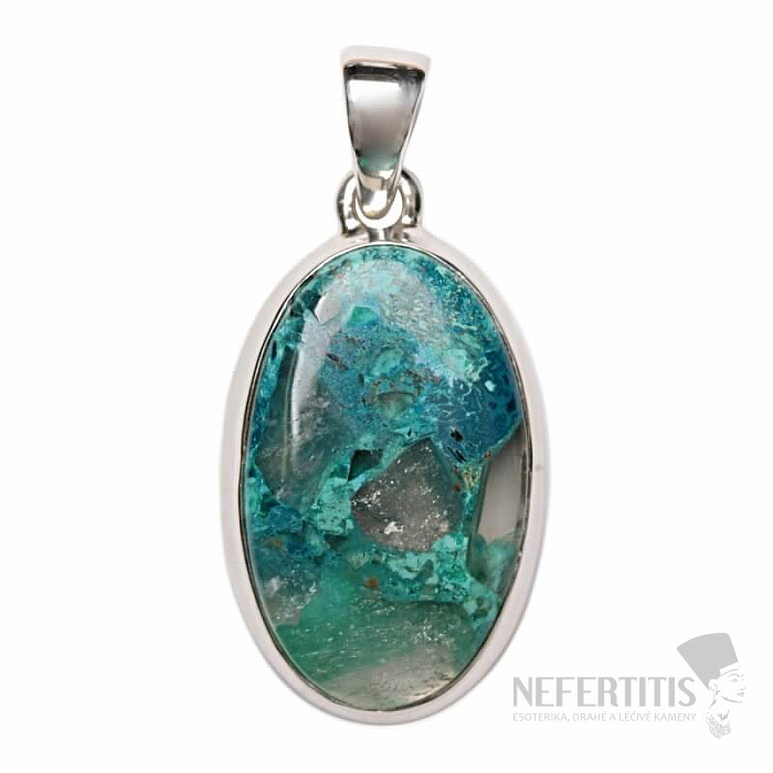 Pôvabný strieborný prívesok so vzácnym a zberateľsky ceneným prírodným Quantum quattro. Ag 925. Quantum quattro je kombináciou štyroch minerálov - shattuckitu, dioptasu, malachitu a chryzokolu. Každý šperk je originálny, neopakovateľný a vďaka farebnej kombinácii a usporiadaniu minerálov podnecuje fantáziu, pripomína pohľad na Zem z vtáčej perspektívy. Budete mať krásny šperk, ktorý nikto neprehliadne, vhodný na rôzne príležitosti. Kupujete priamo vyobrazený šperk.