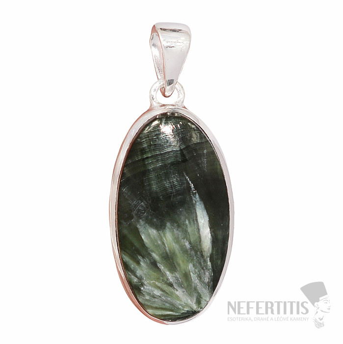 Strieborný prívesok so serafinitom. Krásne zafarbený serafinit. Ag 925. Neprehliadnuteľný kameň nielen vďaka kresbe pripomínajúcej pierka, vhodný na rôzne príležitosti. Kupujete priamo vyobrazený šperk.