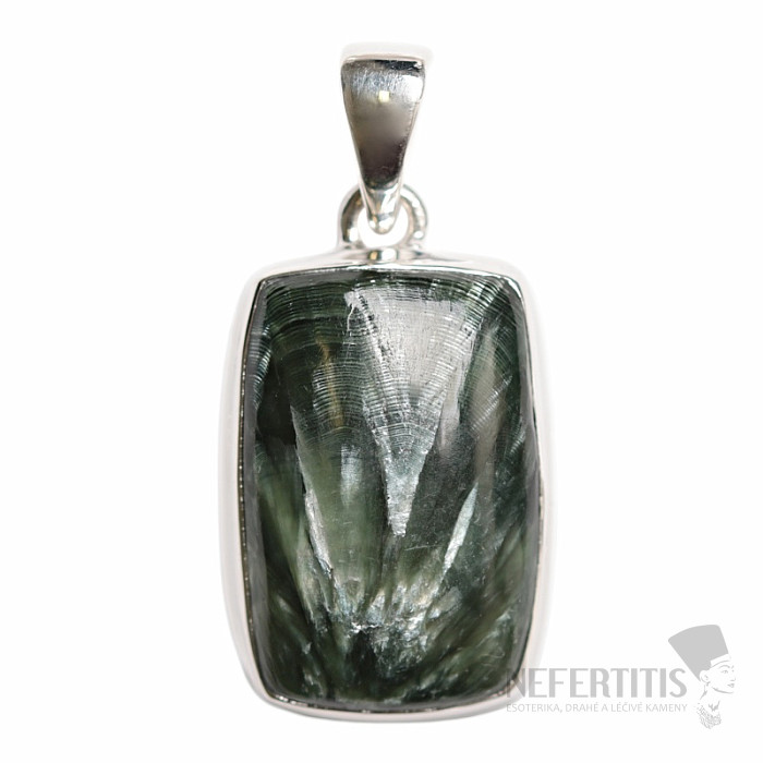 Strieborný prívesok so serafinitom. Krásne zafarbený serafinit. Ag 925. Neprehliadnuteľný kameň nielen vďaka kresbe pripomínajúcej pierka, vhodný na rôzne príležitosti. Kupujete priamo vyobrazený šperk.