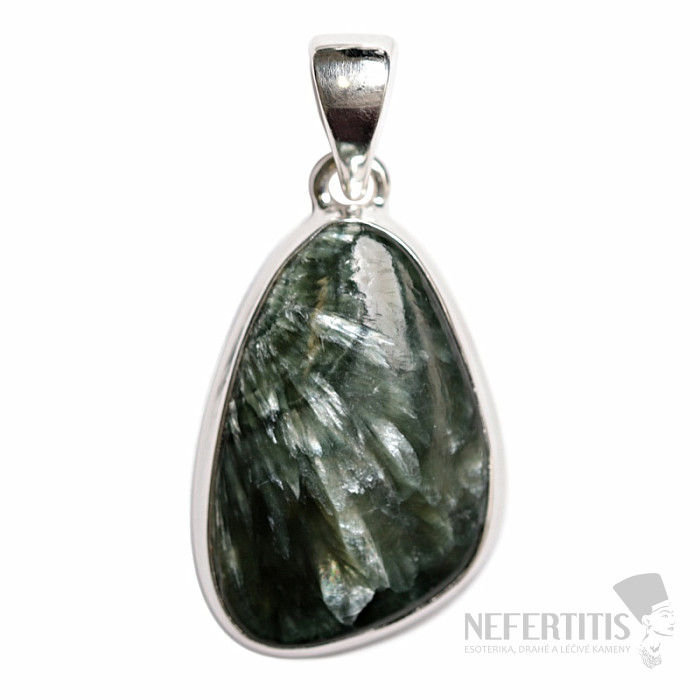 Strieborný prívesok so serafinitom. Krásne zafarbený serafinit. Ag 925. Neprehliadnuteľný kameň nielen vďaka kresbe pripomínajúcej pierka, vhodný na rôzne príležitosti. Kupujete priamo vyobrazený šperk.