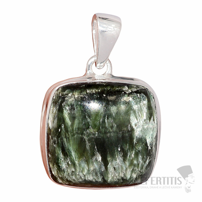 Strieborný prívesok so serafinitom. Krásne zafarbený serafinit. Ag 925. Neprehliadnuteľný kameň nielen vďaka kresbe pripomínajúcej pierka, vhodný na rôzne príležitosti. Kupujete priamo vyobrazený šperk.