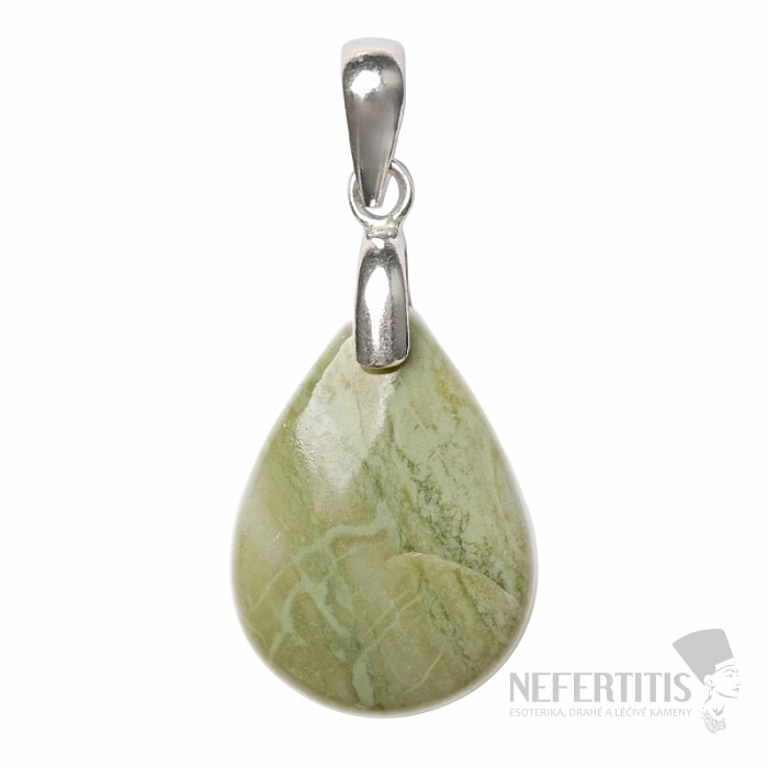 Strieborný prívesok so serpentínom je elegantný šperk s prírodným charakterom, ktorý zaujme svojimi zelenými odtieňmi a jemnou kresbou kameňa. Serpentín je minerál známy svojou príjemnou zelenou farbou, ktorá môže mať rôzne odtiene od svetlo zelenej až po tmavšie tóny. Každý kameň je jedinečný a vytvára originálny prírodný vzor.