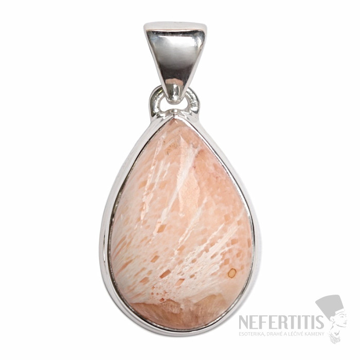 Očarujúce strieborný prívesok s lososovým skolecitom. Nádherný kameň je pôvabným šperkom nielen na letné dni. Vďaka tvaru a veľkosti kameňa sa jedná o výnimočne krásny šperk. Ag 925. Kupujete priamo vyobrazený šperk.