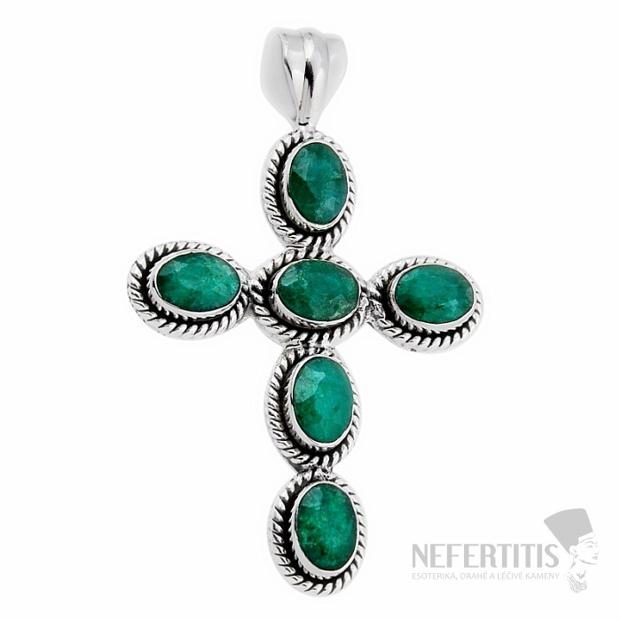 Uchvacujúci a výnimočný strieborný prívesok v tvare kríža s brúsenými indickými smaragdmi. Ag 925. Kupujete priamo vyobrazený šperk.