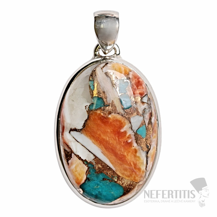Unikátny strieborný prívesok z kúskov lastúr. Ag 925. Šperk je vyrobený z farebných častí lastúr spojených dohromady meďou do pôsobivého kabošonu. Každá mozaika je originálna farbami a tým aj kresbou. Nádherná kombinácia farieb dáva šperku originalitu a neprehliadnuteľnosť. Kupujete priamo vyobrazený šperk.