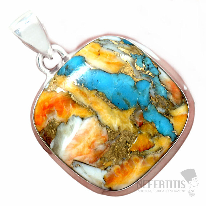 Unikátny strieborný prívesok z kúskov lastúr. Ag 925. Šperk je vyrobený z farebných častí lastúr spojených dohromady meďou do pôsobivého kabošonu. Každá mozaika je originálna farbami a tým aj kresbou. Nádherná kombinácia farieb dáva šperku originalitu a neprehliadnuteľnosť. Kupujete priamo vyobrazený šperk.